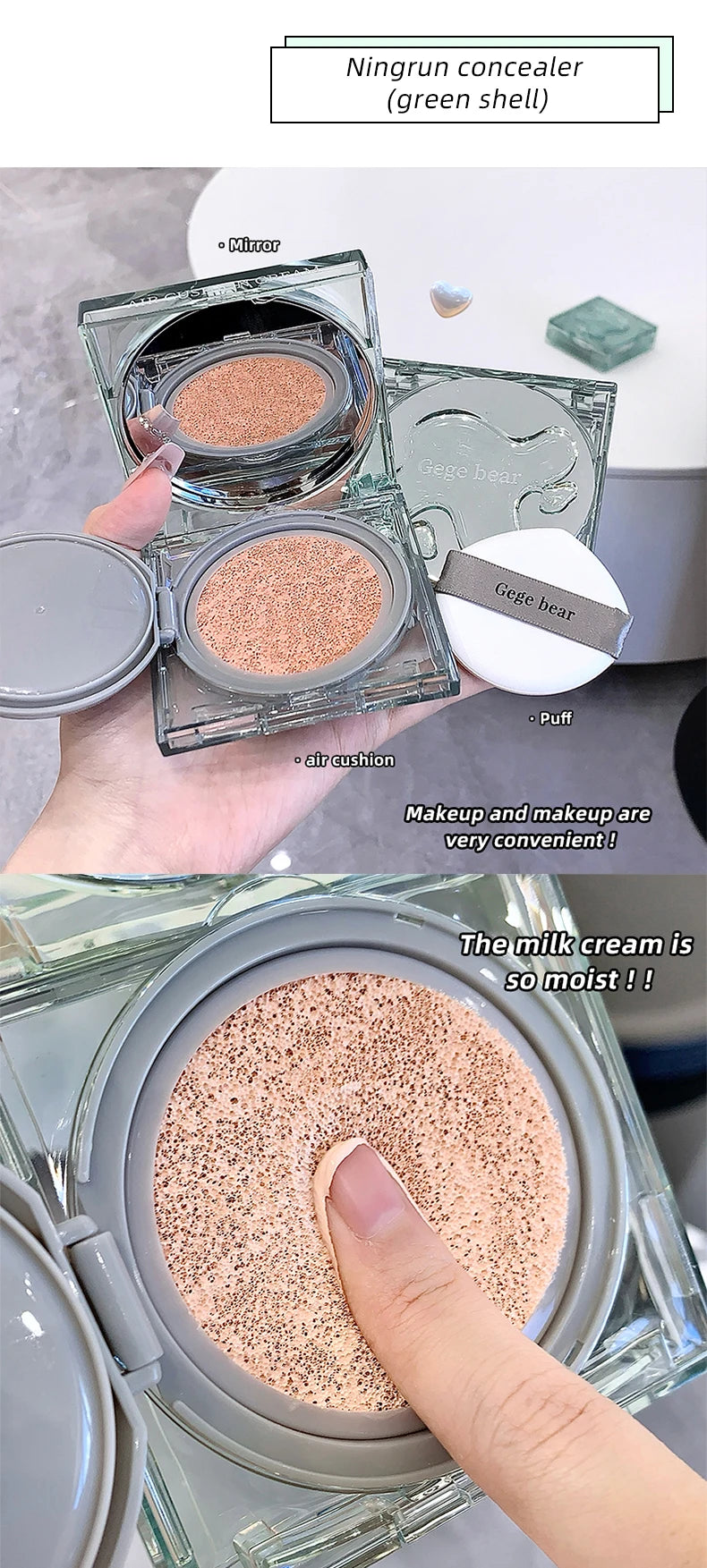 Gege Bear Moisturizing Air Cushion Cream Light Natural Clear Liquid Foundation Brightens Skin Tone Air Cushion BB Cream