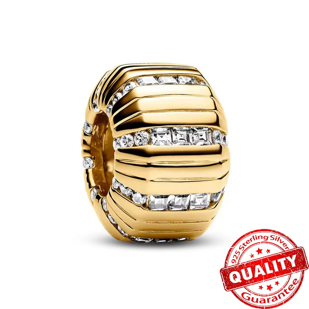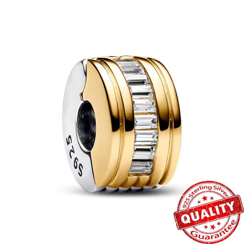 Gorgeous 925 Sterling Silver Stones & Enamel Clip Beads & Seahorse Dangle Charm Fits Bracelet For Women Gold Necklace Pendant