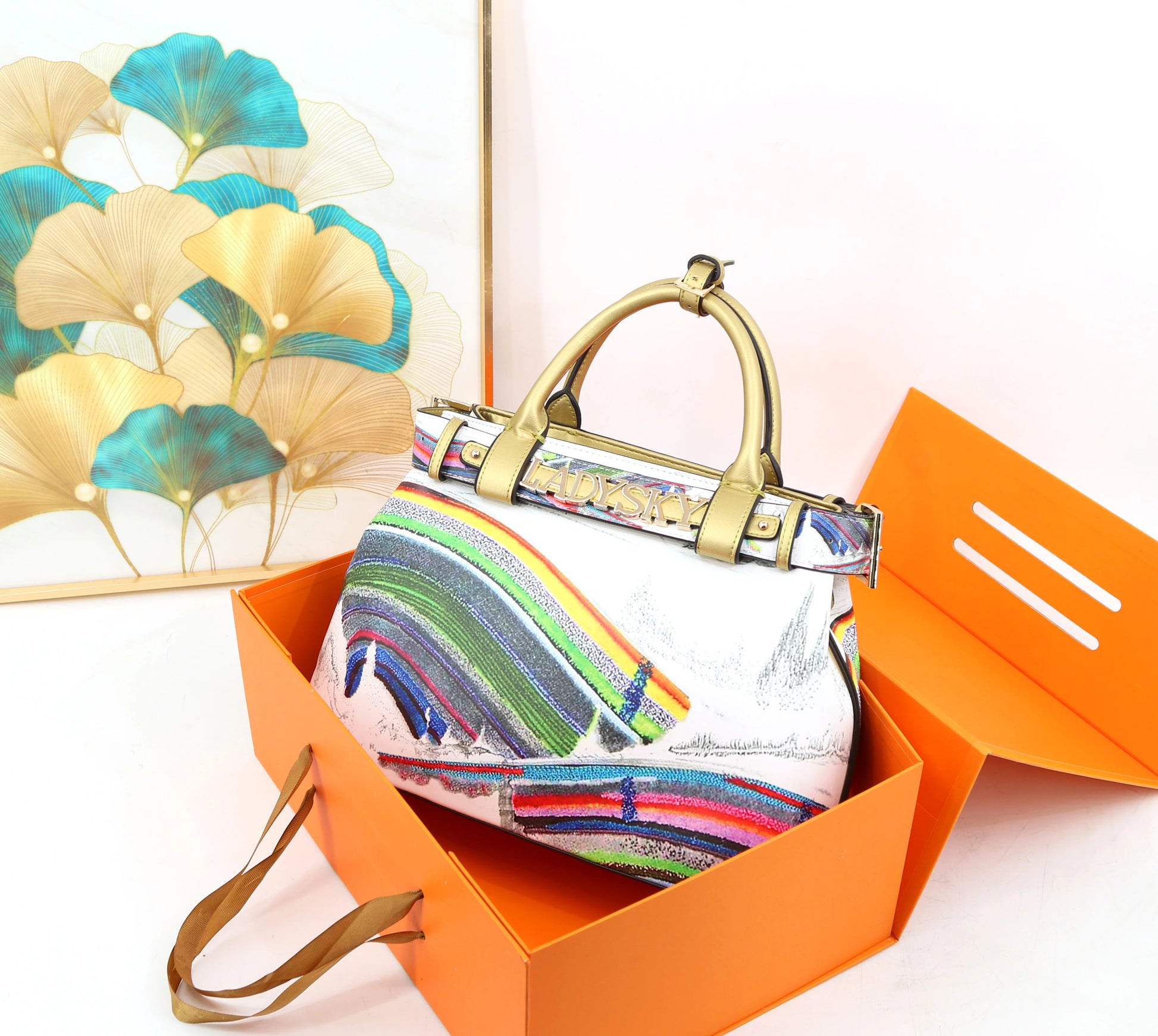 Ladysky Top Product Fashion Women's Tote Bag with Belt Super Personalized Metal Letter Handbag Printed Ladies Shoulder Bag 36 cm