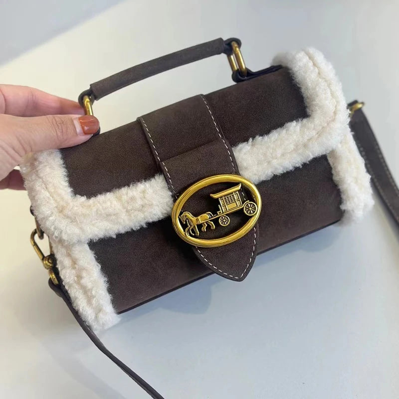 Luxury brand women's bag high-end designer 2024 new autumn and winter plush handbag single shoulder crossbody small square bag