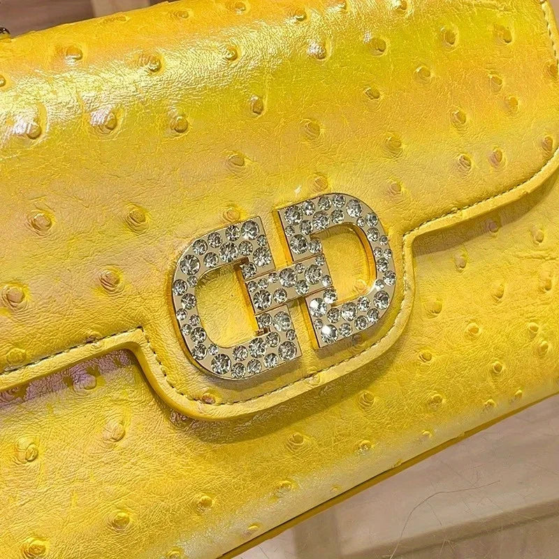 New ostrich pattern underarm handbag for ladies, light luxury diamond-encrusted, elegant single-shoulder crossbody bag