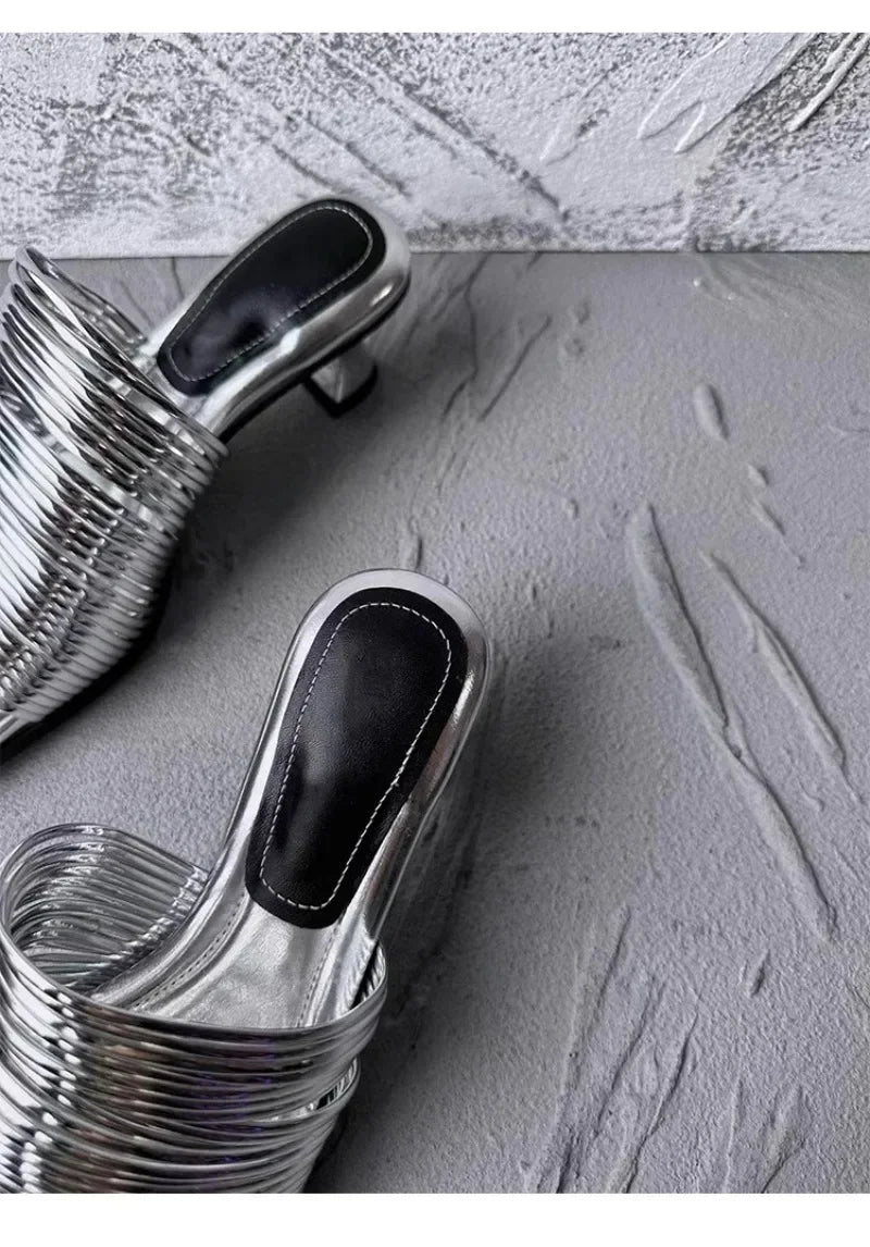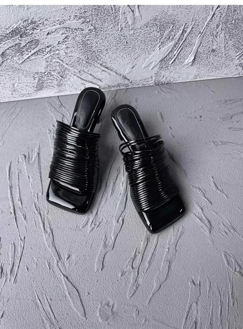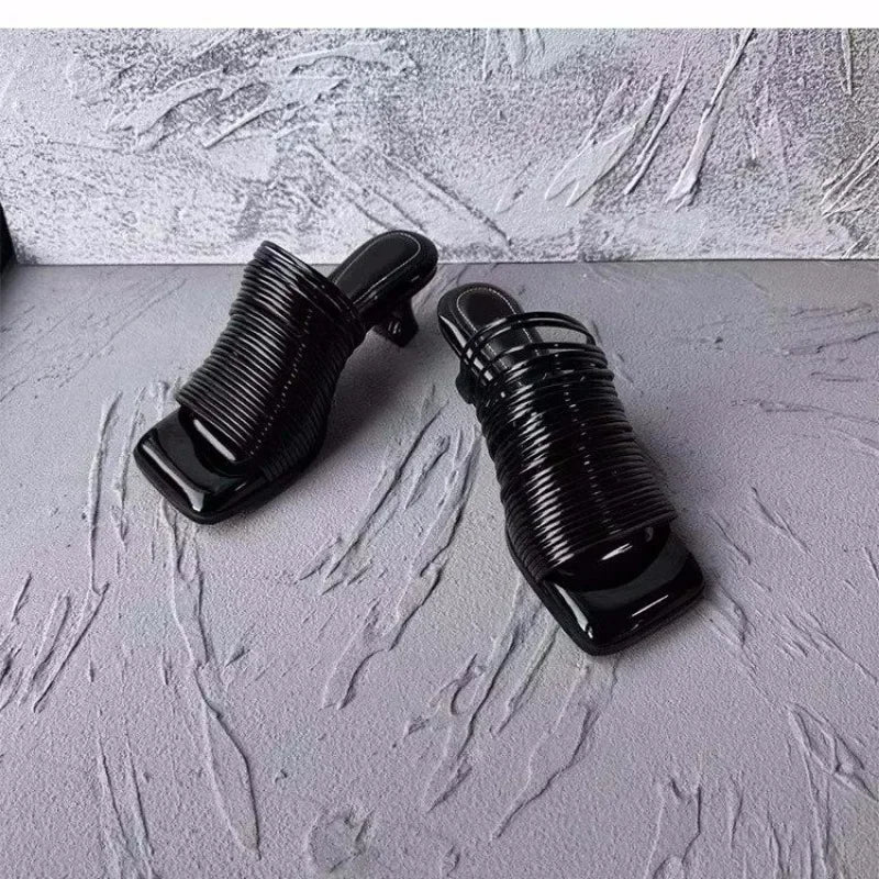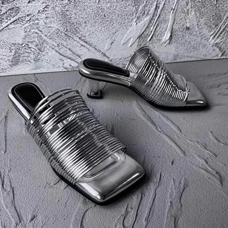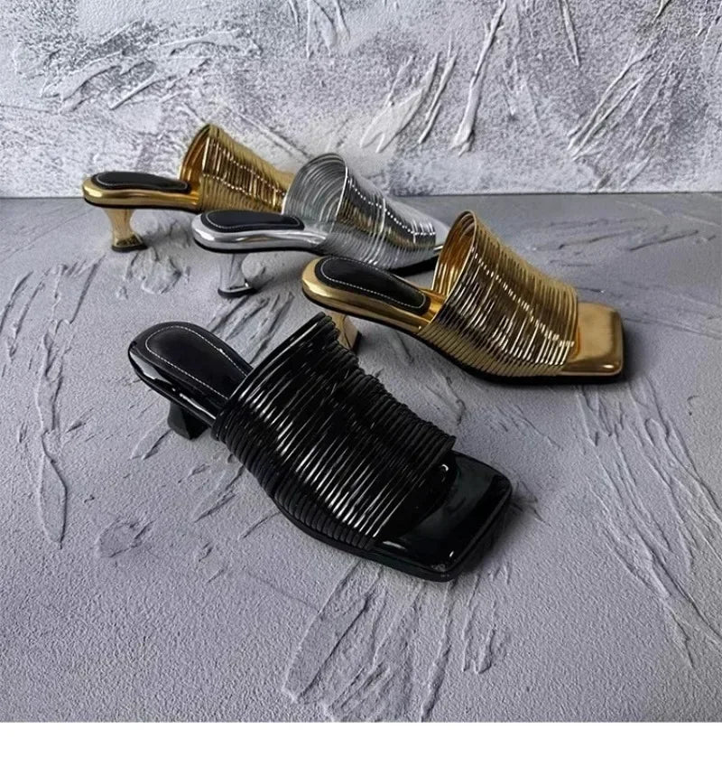 Square Toe Stiletto Sandals for Women Summer Shiny Solid Color High Heels Casual Half Slippers Shoes for Women Designer Sandals